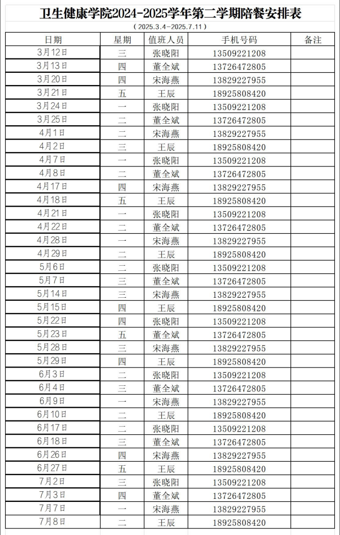 太阳成集团tyc234cc2024-2025学年第二学期陪餐安排表