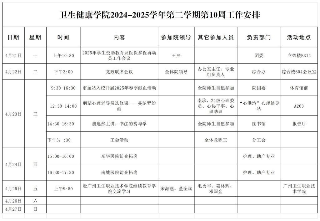 太阳成集团tyc234cc2024-2025学年第二学期第10周工作安排