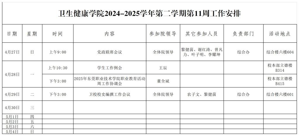 太阳成集团tyc234cc2024-2025学年第二学期第11周工作安排