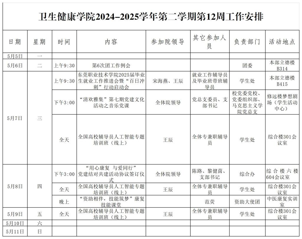 太阳成集团tyc234cc2024-2025学年第二学期第12周工作安排