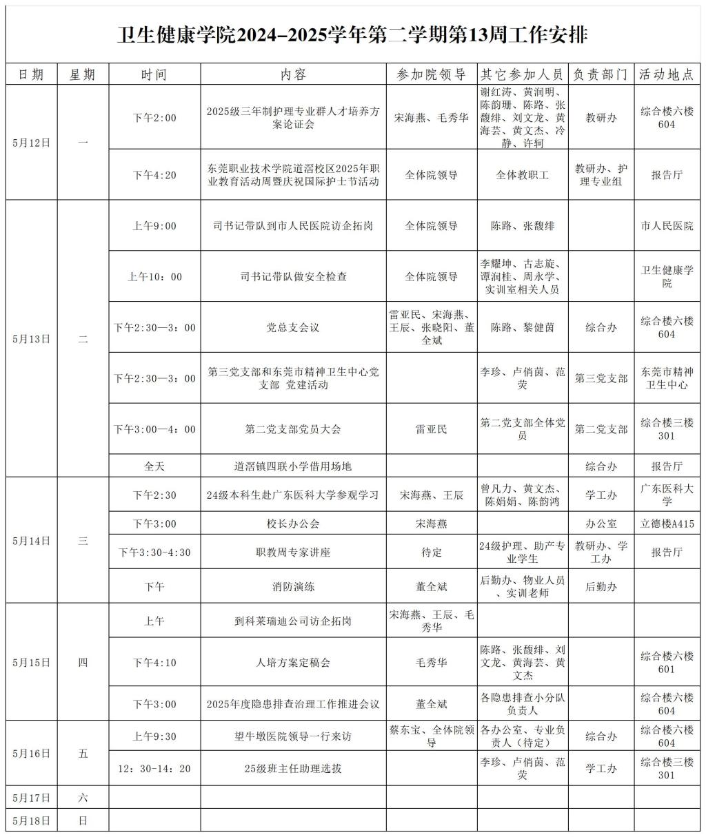 太阳成集团tyc234cc2024-2025学年第二学期第13周工作安排