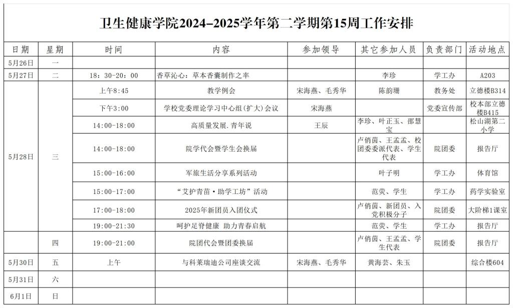 太阳成集团tyc234cc2024-2025学年第二学期第15周工作安排