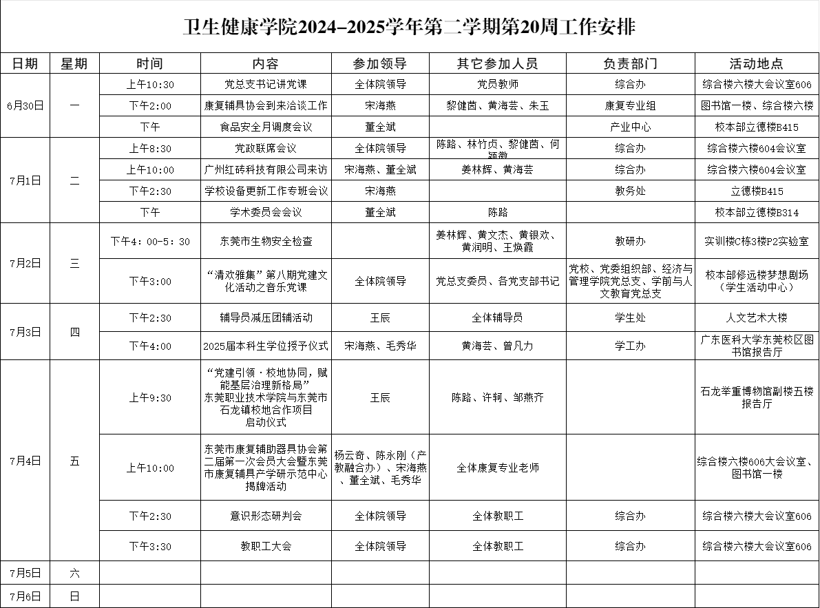 太阳成集团tyc234cc2024-2025学年第二学期第20周工作安排