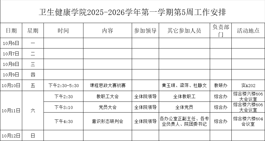 太阳成集团tyc234cc2025-2026学年第一学期第5周工作安排