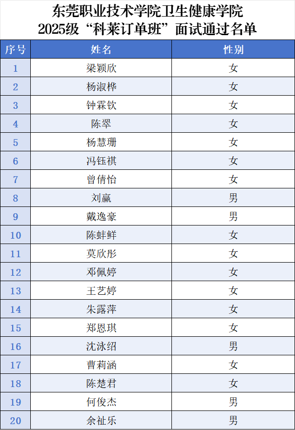 太阳成集团tyc234cc 2025级“科莱订单班”面试通过名单