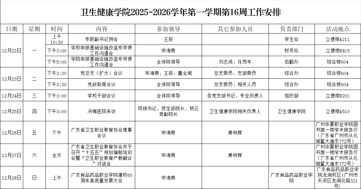太阳成集团tyc234cc2025-2026学年第一学期第16周工作安排
