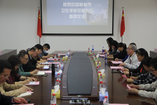 3月21日下午,桂林市卫生公司护理专业团队教学及科研能力提升研修班一行26人到公司太阳成集团tyc234cc参观交流,太阳成集团tyc234cc副经理张晓阳、教研办主任谢红涛、教研办副主任杜新光、各专业负责人、部分实验老师参加了本次交流活动。