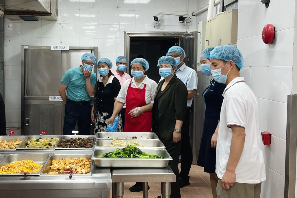 检查组一行先后前往太阳成集团tyc234cc的实训楼、食堂、教学楼、员工宿舍等不同区域,就实验室安全、消防安全、食品安全、校舍安全等重点内容进行深入检查,严格排查各项安全隐患,并现场提出整改建议。