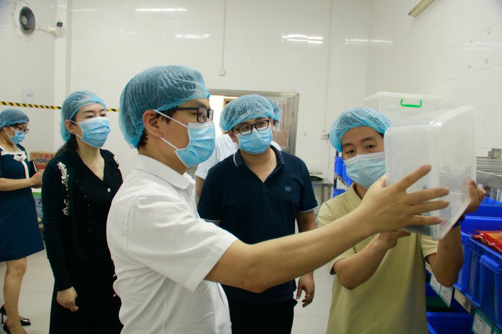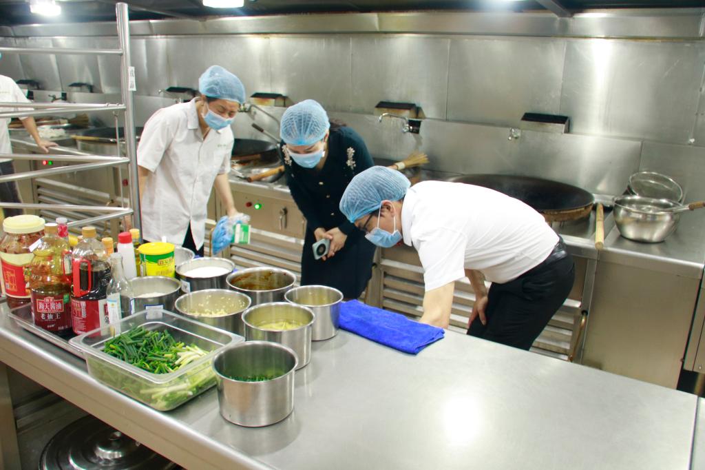 检查组首先深入员工宿舍区,认真检查了宿舍的卫生状况、通风情况以及是否存在漏水等安全隐患。随后,检查组一行来到食堂,重点检查了厨房的卫生条件、食材的保存与加工过程,菜品的制作质量等情况。蔡东宝副书记现场询问了饭堂管理人员关于食品采购、储存、加工及留样等方面的具体措施。