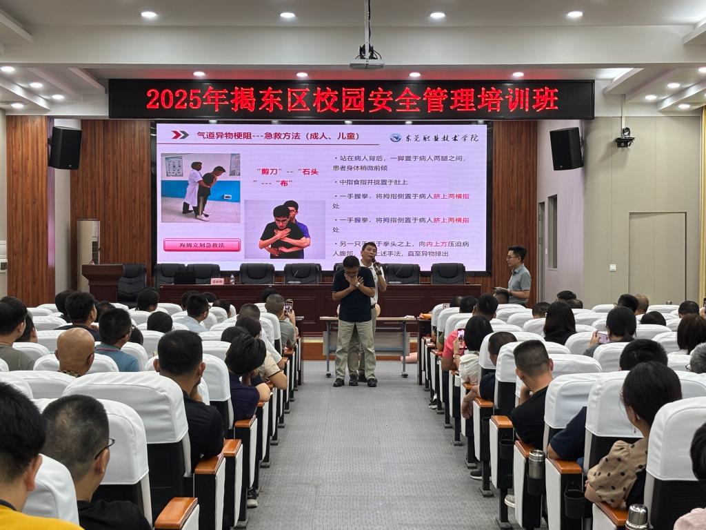 为推动公司“双百行动”走深走实,切实提升揭阳市揭东区校园安全管理水平,6月24日下午,我院闫勇和姜林辉两名党员老师化身“安全卫士”送教上门。他们来到揭东区教师发展中心,为当地180名校园安全及食品安全管理相关人员主讲题为“2025年揭东区校园安全管理培训——第四场防溺水安全专场”的专题培训。