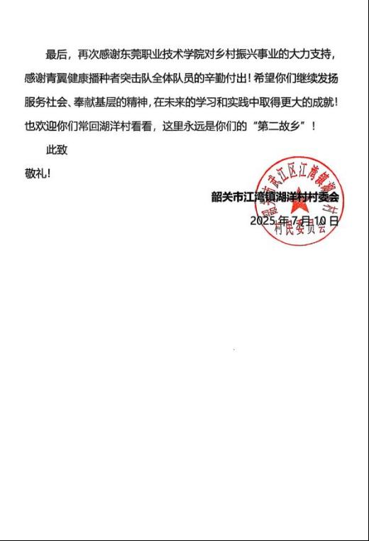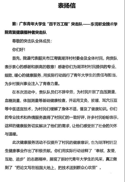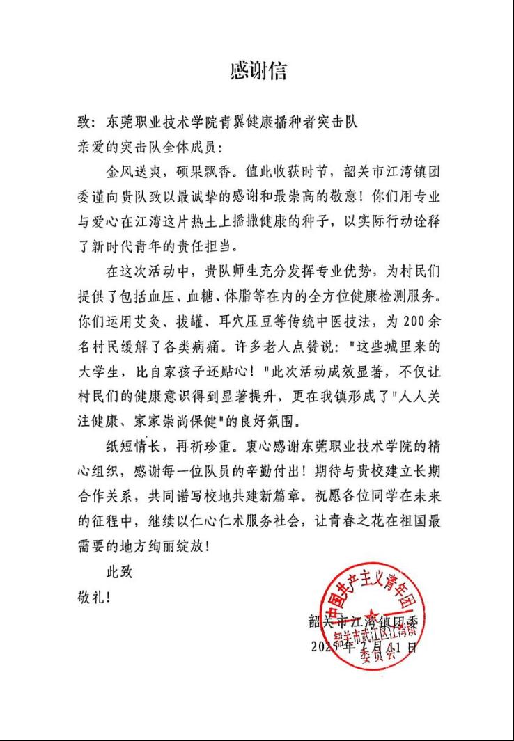 该团队正全力搭建数字化健康管理平台,计划通过“低流量科普+远程咨询”让服务延伸至云端,实现长效帮扶。此次活动还收到当地团委的感谢信,成为校地合作共促健康的生动范例。