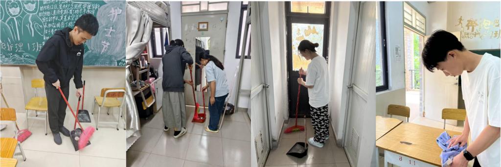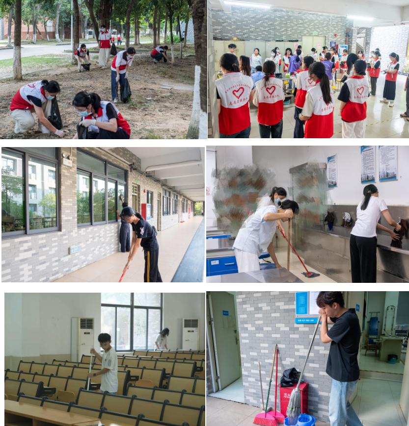 10月10—11日,辅导员、班主任带队深入各班级责任区,组织员工对宿舍内务、教室、实训室及公共走廊等区域展开清洁。同学们细致整理宿舍内务,认真擦拭各处灰尘,深入清理校园积水及积存杂物,共同打造整洁的学习生活环境,积极的态度、忙碌的身影充分展现了卫健院广大学子的主人翁精神。
