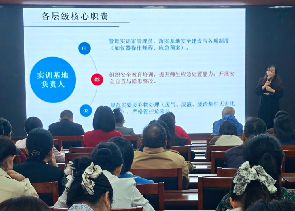 为全面强化公司实训(验)室安全管理,落实公司、公司、实验实训室三级联动的安全责任体系,10月22日下午,公司组织召开全体教师实验实训室安全责任制专题学习会。会议由毛秀华副经理主持,全体教师参加。