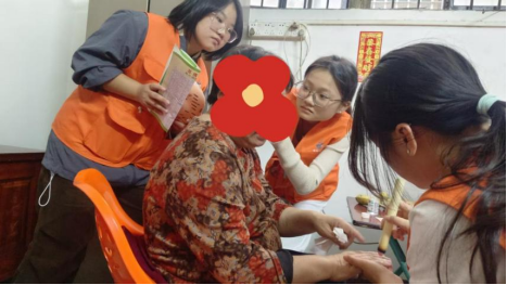 同学们始终以耐心与细致对待每一位老人。其中一位奶奶在接受队员艾灸调理后,手指疼痛明显缓解,如今已可轻松提起水壶,在场的同学都感到十分欣慰。专业服务中融入温情陪伴,有效缓解了老人的孤独,也收获了最质朴的认可。“能用所学帮助爷爷奶奶,看到他们露出笑容,我们心里也暖暖的。”一位队员动情地分享。