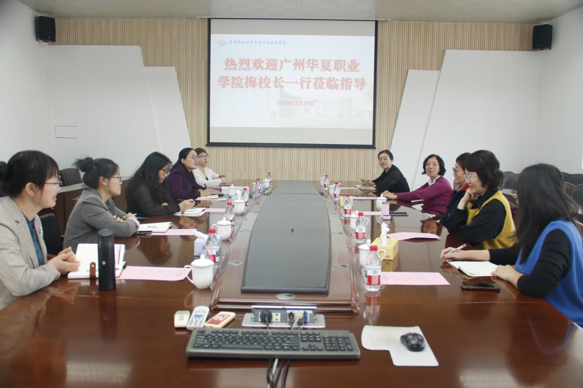 12月29日下午,广州华夏职业公司副董事长梅桂萍率队一行5人来到公司,就护理技能竞赛组织、实训建设及专业发展等开展调研座谈。我院副经理毛秀华、护理专业负责人及相关骨干教师陪同交流。
