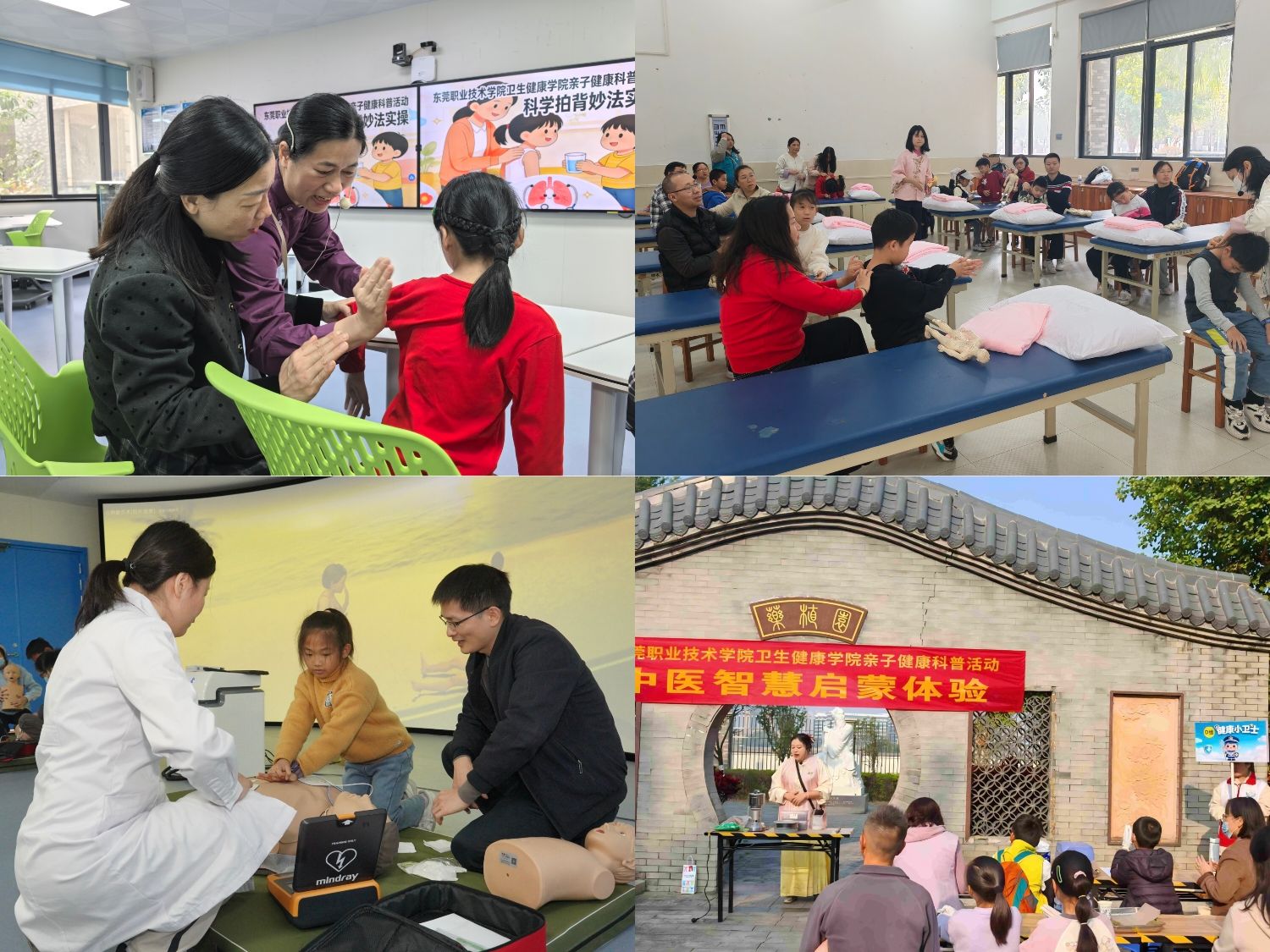“科学拍背妙法实操”环节,家长们紧盯示范动作,认真学习正确祛痰手法,快速掌握儿童呼吸道护理的实用技能;“亲子急救实战演练”现场,逼真的模拟急救场景让家长与孩子并肩学习心肺复苏操作要领,有效提升家庭应急救护能力;“暖心按摩亲子互动”环节里,小手揉按长辈肩头,大手轻抚孩子脊背,简单的按摩手法化作亲子间情感交流的暖心桥梁;中医智慧启蒙体验活动中,孩子们走进校园药植园辨识百草,亲手制作艾条,在触摸与实践中真切感受中医药文化的独特魅力。