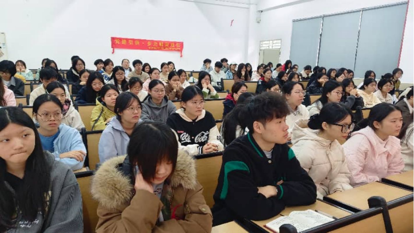 李珍老师为同学们解读国家资助政策,明晰青年时代使命。随后由范荧老师提醒学子合理规划生活,树立正确消费观,杜绝铺张浪费与盲目高消费。宣讲活动还通过分享“同行者”案例传递奋斗诚信精神,李珍书记寄语学子心怀感恩、勇担责任,并给出期末备考实操建议,切实解决学子困惑。最后,对学子们提出殷切希望:“天行健,君子以自强不息”。