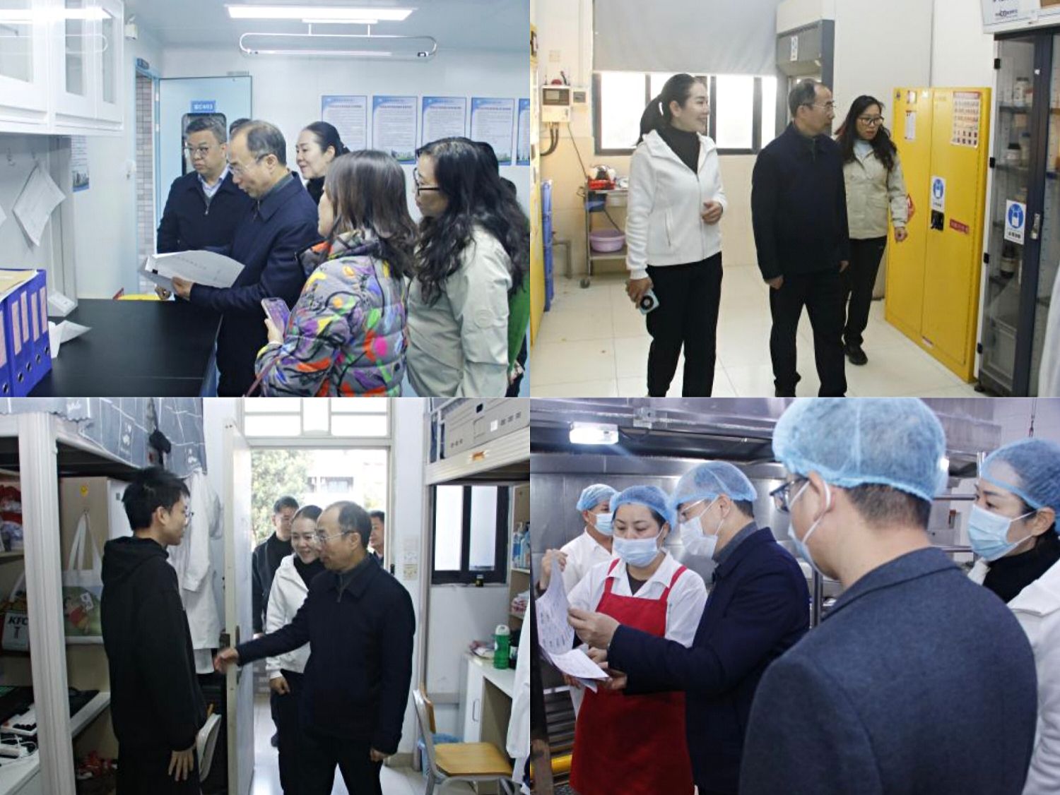 检查组先后对道滘校区食堂、员工宿舍、实训室等重点区域实地查看,围绕消防设施配备、电气线路铺设、食品卫生状况、实验室危化品管理、信息网络等关键环节进行全面细致的排查。针对检查中发现的细节问题,检查组现场逐项提出针对性整改意见与优化建议。