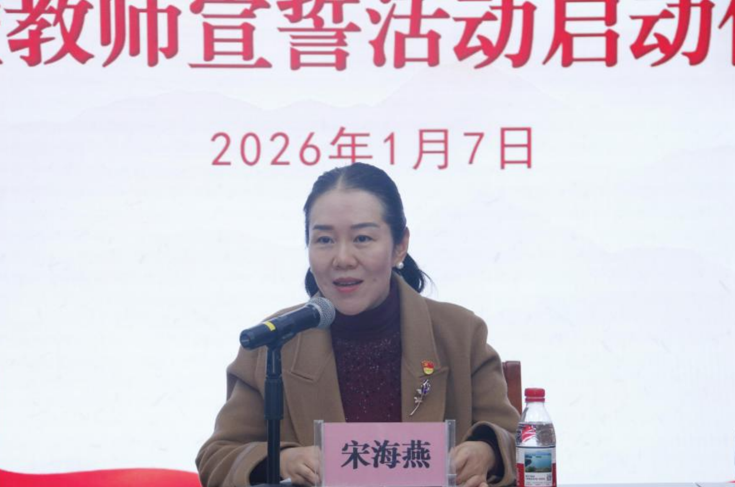 授牌仪式后,教师宣誓活动正式启动。全体教职工面向国旗庄严郑重宣誓:“我志愿成为一名光荣的人民教师,忠诚党的教育事业,遵守教育法律法规……”铿锵有力的誓言回荡会场,既彰显了教职工对教育事业的无限忠诚,也传递出立德树人的坚定决心。