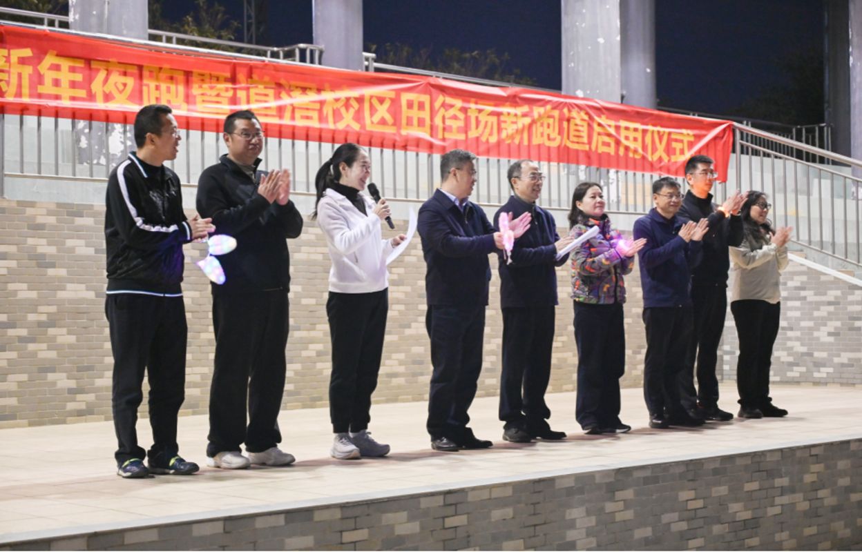 1月7日晚上,道滘校区2026新年夜跑暨道滘校区田径场新跑道启用仪式顺利举行。公司党委副书记、院长贺定修,党委委员、党委宣传部部长杨洋出席活动,相关职能部门负责人以及公司师生代表160余人共同见证这一重要时刻。活动由公司党总支书记、经理宋海燕主持。