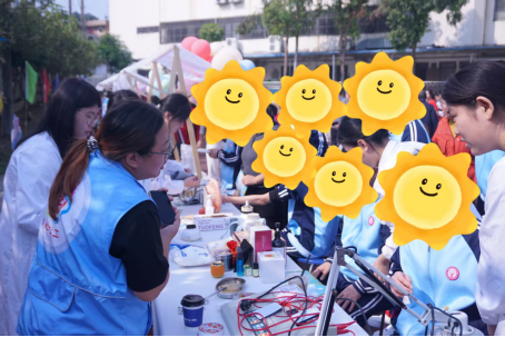 12月5日,范荧老师和卢俏茵老师带领员工志愿者赴东莞市残疾人托养中心开展爱心志愿党建服务,以实际行动践行社会责任,传递温暖关怀,当天服务约200人次。本次义诊团队为到场的残疾人朋友、家属及工作人员提供了多项中医特色服务:血压测量、中医耳穴压豆、传统艾灸温通、火龙罐、红外烤灯、中频理疗仪体验、养生茶饮。