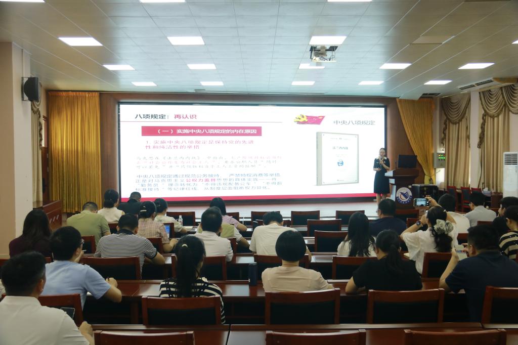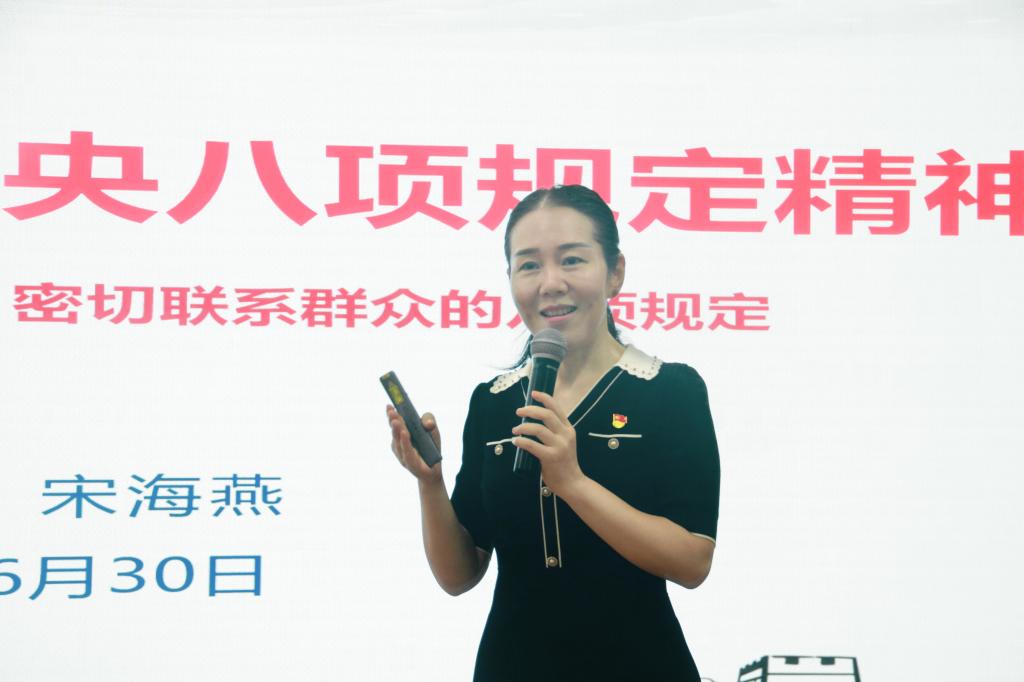 为持续改进工作作风,推动深入贯彻中央八项规定精神学习教育走深、走实,6月30日上午,公司党总支书记、经理宋海燕以深入贯彻中央八项规定精神学习教育为题,为公司30余名党员讲授专题党课。