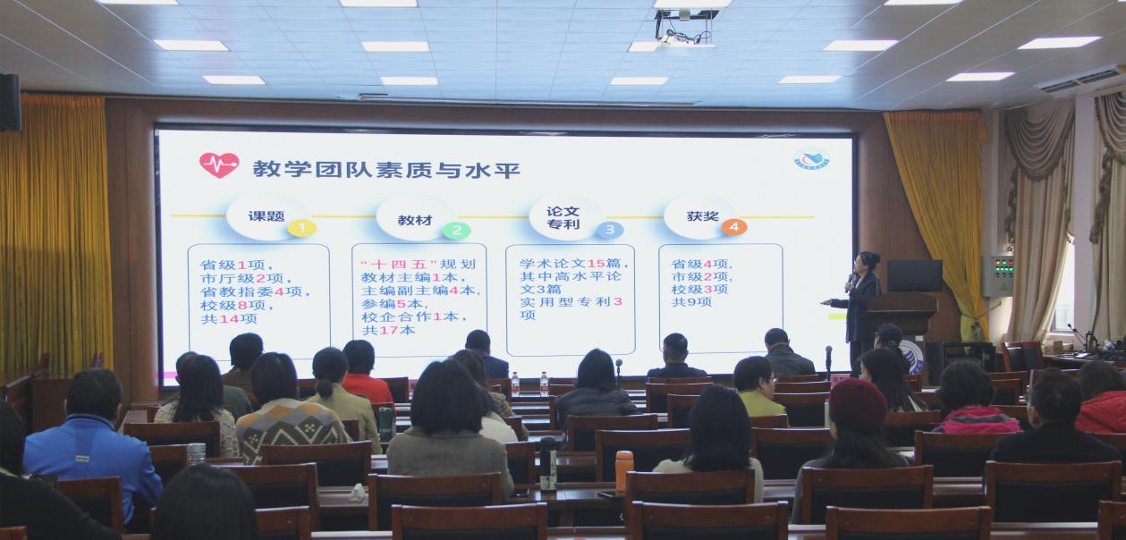 董全斌副经理、岑慧红教授作评委,护理、助产、药学、康复四个专业组的负责人陈路、张馥绯、毛秀华、黄海芸从专业定位与建设规划、教学改革与教学管理、教学基本条件、人才培养工作质量以及专业特色五个方面对各自的专业进行剖析。